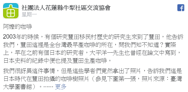 台灣有不少地方的咖啡都滿有名的,像是雲林古坑、台中東勢等,都是有名的咖啡產地,不過你知道嗎,最早的咖啡產地,可能是在花蓮喔!專門分享花蓮文史趣談的「財團法人花蓮縣牛犁社區交流協會」,因為常常聽到外界傳言,指出花蓮早期盛產咖啡,專門用給日軍飲用,為了證實事件的真實性,深入訪談90歲的高齡阿嬤,才發現咖啡的真相,笑說「當初日軍打仗失敗,我們可不負責啊~」讓網友全都笑翻了!