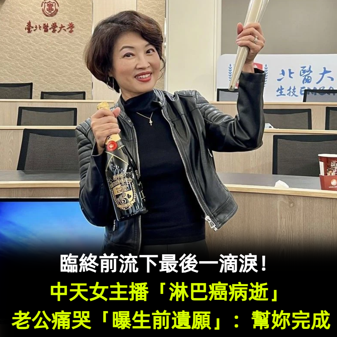臨終前流下最後一滴淚!中天女主播「淋巴癌病逝」 老公痛哭「曝生前遺願」:幫妳完成