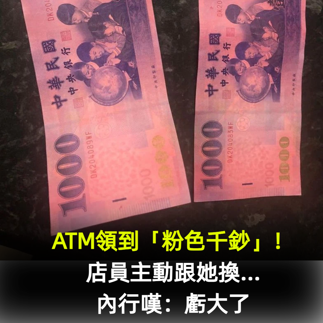 異色限定版!ATM領錢竟噴出「2張粉色千元鈔」 他嚇壞去超商「秒換成真鈔」網卻嘆:可以賺翻倍