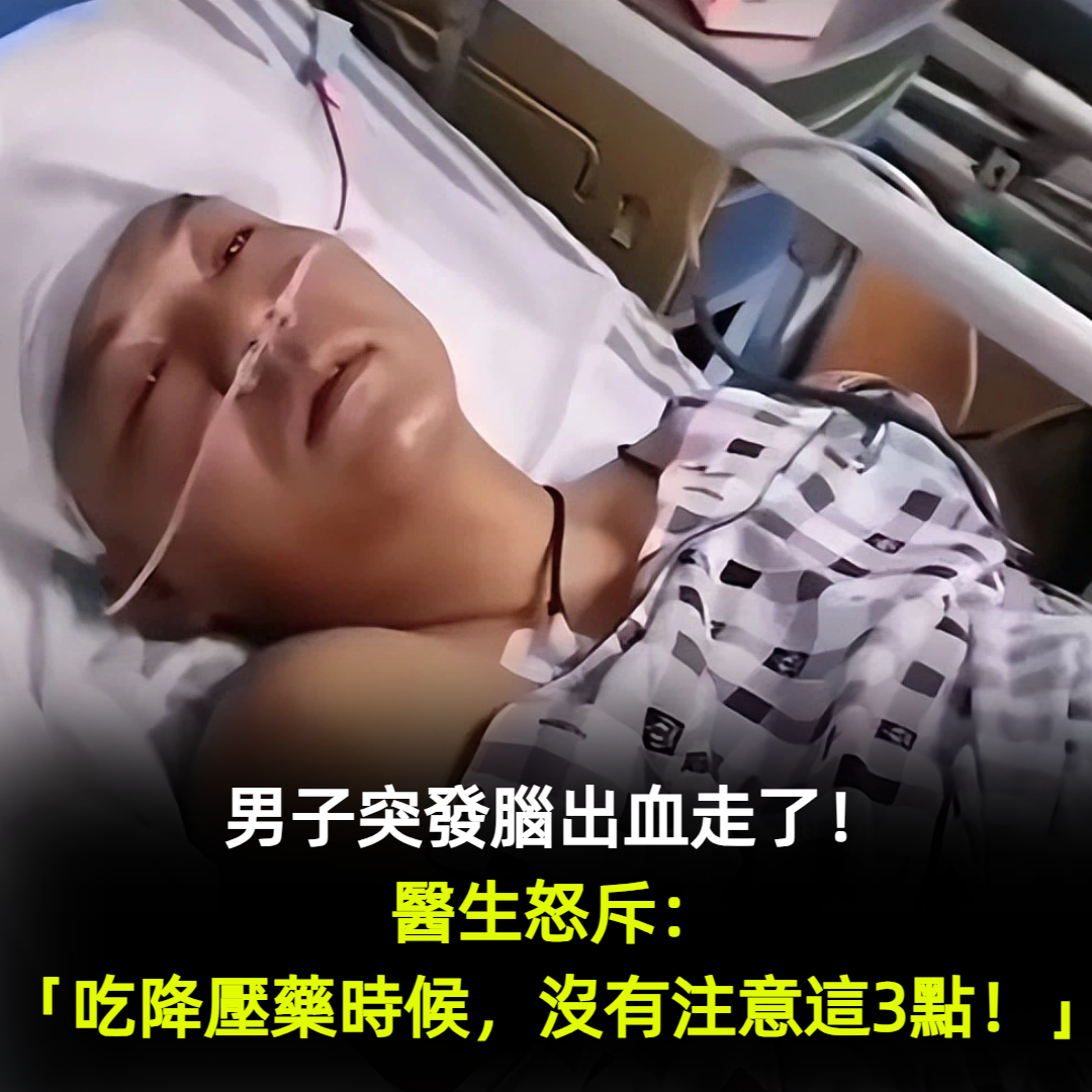 男子突發腦出血走了!醫生怒斥:「吃降壓藥時候,沒有注意這3點!」