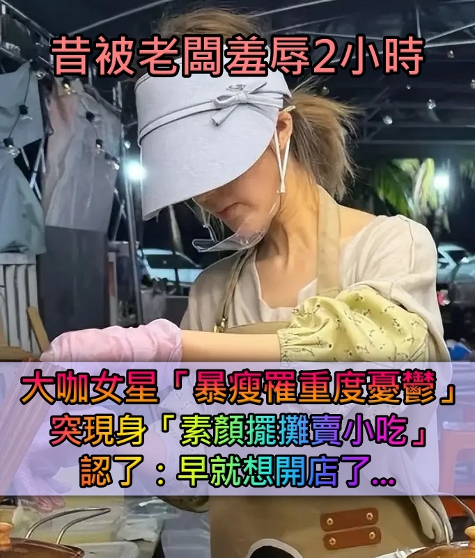 昔被老闆羞辱2小時!大咖女星「瘦一圈罹重度憂鬱」 突現身「素顏擺攤賣小吃」:早就想開店了