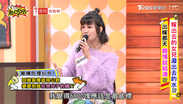 不過娘家這麼挺,婆婆卻很有意見。林咚咚說每次週末回娘家買個伴手禮給媽媽,婆婆臉色就很難看。遇到過節她想包個6千塊紅包盡孝心,婆婆馬上跳出來攔截,說:「包2千塊意思意思就夠了」說長輩會自己照顧自己,不用她操心。