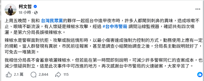 快訊/大逆轉!柯文哲遭噴辣椒水「兇手竟然是他」 Elmo 2026-04-21 檢舉 豈料下午案情急轉直下,真相曝光後所有人都傻眼了。原來當天是分局長周俊銘在測試有問題的辣椒水噴霧器,因為操作失誤才導致這場誤會。網友得知後紛紛留言:「這也太瞎了吧」、「警察自己搞烏龍還讓人誤會」、「分局長出包也是挺扯的」、「難怪查不到可疑人士」、「這劇本根本想不到」。警方依照相關規定將周俊銘記過兩次,並調任非主管職務。圖片來源:《三立新聞網》 Advertisements 圖片來源:柯文哲臉書影片來源:TVBS NEWS資料來源:《TVBS》 Advertisements 回首頁 2/2 Advertisements 猜你會喜歡 政治家族魔咒?前總統外孫女認了「罹癌症末期」:我只剩一年可活 民進黨拍板了!2政壇大將「確定參選市長」 台北市長喬不定?民進黨爆「推神秘第5人」 編輯精選推薦 More + 台語歌后慟別摯愛!告別式上認「早隱瞞病情」 道歉哭喊:原諒我簽放棄急救 空窗多年!68歲陳美鳳突羞認「身邊有個他」 40年前就認識「遭男方母親拆散」 65歲男星獨居暴斃!大咖女星放下恩怨「送前夫最後一程」 昔遭動手6年嘆「死者為大」 本土劇女星生了!7年前凍卵「終於來到我身邊」 歌手尪嗨喊:生個足球隊 44歲許維恩罹乳癌!醫示警「3日常用品」易致癌:別碰才能保命 被封最後的天后!當紅女星被拍「與黑人進旅館」 對方身份曝光「粉絲失望透頂」險斷送演藝事業 弟成植物人、姊猝逝!玉女歌手「遭前夫設套」騙走娘家房產 「狠斬16年婚姻」近況曝 白沙屯媽祖起駕「因1事錯過吉時」!山邊王爺「鑾轎突爆衝」信眾嘆:神明不爽了 出大事了!伊朗出手「白宮緊急會議」 美國「11名大咖失蹤身亡」 85歲失智父身亡!林葉亭突宣布「皈依佛門」 遇大師「開示一番話」忍不住淚崩 趕在40歲前閃婚!八點檔女星「宣布嫁給他」 尪驚人身分曝「媒人是柯叔元」 以為只是小感冒!本土女星悲痛證實「他併發肺炎過世」 一度淚灑現場「後悔同意插管」 15歲兒「睡夢中離世」!本土女星「送愛子火化」求做1事 「PO照圓滿了」:媽媽和你永不分開 最新/3度中風送醫!資深男星爆離婚「斷50年髮妻」 「砸1億淨身出戶」家族爆紛爭 快養不起小孩!本土男星「開計程車、斜槓房仲」 突宣布「離開台灣」:演藝圈沒工作 22歲愛女病逝!資深男星「走不出喪女痛」留白長髮現身 掛骨灰項鍊「代女做1事」惹淚 離婚11年!洪榮宏愛女結婚「終破冰前妻」 「2爸爸牽她進場」催淚畫面曝 功德圓滿了!台語歌后「悲曝他離世」享壽95歲 淚喊:去當快樂的神仙吧... 最新/賈靜雯深夜慟曝「她已離世」 淚PO合照喊:真的好愛你... 晚年隱居台東!68歲名主持失蹤「車內身亡」 伴侶悲曝「死前做1事」:還掛念著我 千萬起家厝賣掉了!張秀卿認手頭緊「為女兒月花20萬」 她超爭氣「進軍美國」成台灣之光 台灣大咖病逝「享壽83歲」!周遊告別式痛哭「認婚內出軌」:兒子很恨我... 快訊/羅志祥46歲「爆家中猝死」經紀人緊急出面了 送別亡夫3年!丁強遺孀「不投靠美國兒女」 獨留台灣「76歲拒健康檢查」原因曝光 24歲兒失明!于美人爆「他在飯店掃廁所」維生 不盼紅包只求「別再花我的錢」
