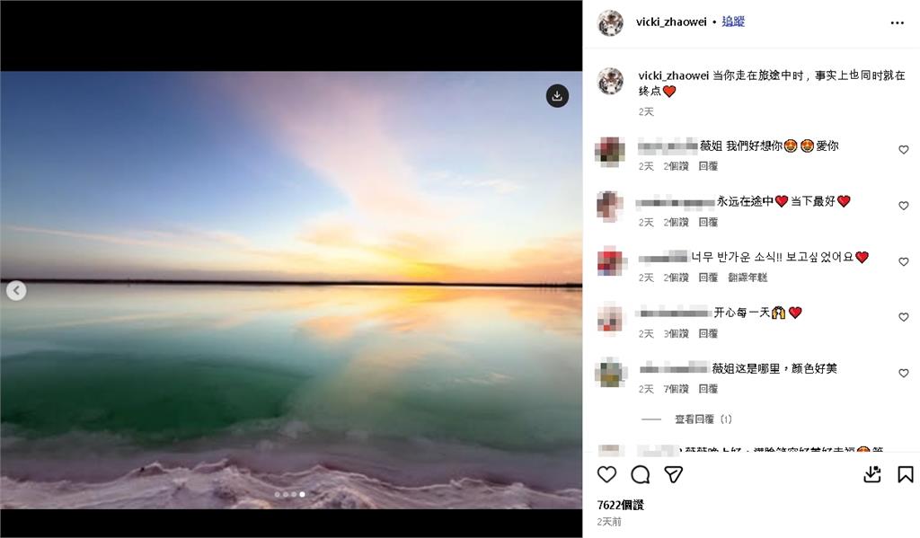 在傳出「趙薇胃癌離世」後,許多粉絲都十分擔心她。沒多久,趙薇悄悄更新她的社群平台,久無露面的她驚喜曬出旅遊近照,並俏皮寫下:「當你走在旅途中時,事實上也同時在終點」看來是在悄悄闢謠「烏龍死訊」,現在的小燕子過得十分愜意!
