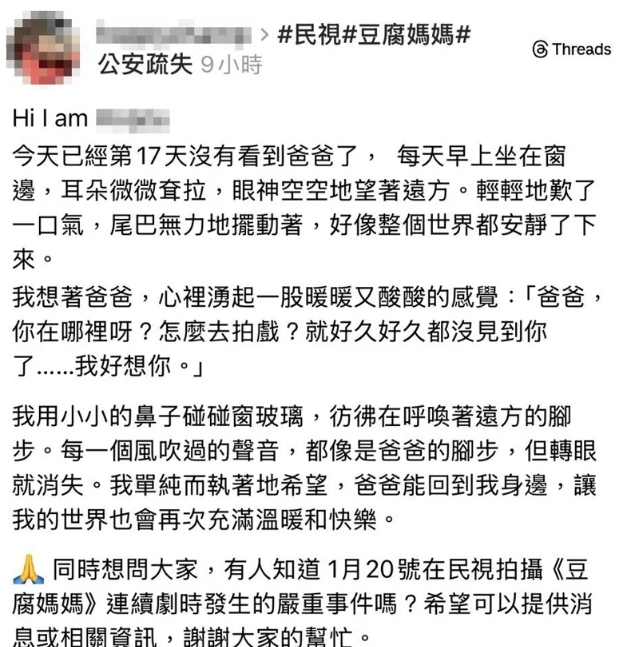 八點檔演員爆墜樓!孩子痛哭「17天沒見到爸爸了」民視緊急回應 Elmo 2026-02-05 檢舉 圖片來源:Threads不少網友看到消息後紛紛留言表示:「天啊,拍戲安全措施一定要做好!」、「替身演員真的很辛苦,希望平安康復」、「17天沒見到家人,家屬該有多擔心」、「工安真的不能開玩笑,要嚴格把關」、「祝福早日康復,劇組要負起責任」。民視也強調,未來會更嚴格審視拍攝現場的安全環境,做好完善的把關工作。圖片來源:《LINETODAY》資料來源:《聯合新聞網》 Advertisements 回首頁 2/2 Advertisements 編輯精選推薦 More + 他真的每天都在...具俊曄「暴瘦坐墓園」天天伴亡妻 粉絲直擊「悲傷身影」淚:最深情男人 李英愛輸了!73歲富商尪「超凍齡像40壯年」站一起超登對 「不時甜蜜咬耳朵」網羨慕 弟成植物人、姊猝逝!玉女歌手「遭前夫設套」騙走娘家房產 「狠斬16年婚姻」近況曝 趕在40歲前閃婚!八點檔女星「宣布嫁給他」 尪驚人身分曝「媒人是柯叔元」 再婚2年了!43歲李燕突喊「當媽媽實在太辛苦」 認「已經有愛的結晶」:最完美的幸福❤️ 離婚18年!前夫早知方文琳罹癌「願意付手術費」 「1理由遭拒」爆她術後狀況 當年親吻1歲嬰!42年後「對方竟成巨星」同框劉德華 「超高顏值如兄弟」粉絲喊:真的差19歲? 65歲男星獨居暴斃!大咖女星放下恩怨「送前夫最後一程」 昔遭動手6年嘆「死者為大」 24歲兒失明!于美人爆「他在飯店掃廁所」維生 不盼紅包只求「別再花我的錢」 大咖男星妹妹出嫁!全身金飾「曾獲近千萬豪宅」嫁妝豐厚 兄妹長超像「一看媽媽懂了」:基因強大 離婚11年!洪榮宏愛女結婚「終破冰前妻」 「2爸爸牽她進場」催淚畫面曝 模範孝子!比莉罹癌「兒白天工作、晚上睡醫院」 坦言「一滴淚沒掉」:媽媽可以我也可以 晚年兒孫滿堂!73歲影壇大哥「拄拐杖現身」腳步蹣跚 兒子「全程攙扶不喊累」網羨:又帥又孝順 功德圓滿了!台語歌后「悲曝他離世」享壽95歲 淚喊:去當快樂的神仙吧... 空窗多年!68歲陳美鳳突羞認「身邊有個他」 40年前就認識「遭男方母親拆散」 最新/賈靜雯深夜慟曝「她已離世」 淚PO合照喊:真的好愛你... 台灣大咖病逝「享壽83歲」!周遊告別式痛哭「認婚內出軌」:兒子很恨我... 15歲兒「睡夢中離世」!本土女星「送愛子火化」求做1事 「PO照圓滿了」:媽媽和你永不分開 旅美多年!資深女星「堅持落葉歸根」回國5天安詳離世 死前「砸600萬做1事」眾人淚目 22歲愛女病逝!資深男星「走不出喪女痛」留白長髮現身 掛骨灰項鍊「代女做1事」惹淚 婚變尪落跑!單親媽「獨扛千萬債養孩」到處躲黑道 「一開口驚艷眾人」熬成台灣歌后 愛上大22歲已婚天王!最強狐狸精「靠生兒逼走原配」入主豪門 30年後「近況讓人直搖頭」:太不堪了... 晚年隱居台東!68歲名主持失蹤「車內身亡」 伴侶悲曝「死前做1事」:還掛念著我 台語歌后慟別摯愛!告別式上認「早隱瞞病情」 道歉哭喊:原諒我簽放棄急救 慶祝17歲愛女畢業!53歲大咖「兒女皆讀名校」年花千萬 驕傲「她獲三大獎」:又美又自信
