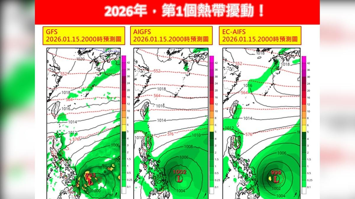 根據《TVBS新聞網》報導,2026年首個熱帶擾動系統可能即將現身!台大大氣科學博士林得恩透過臉書粉專「林老師氣象站」指出,美國NCEP、AIGFS模式與歐洲EC-AIFS模式在今(12)日清晨的最新模擬結果不約而同顯示,菲律賓東部外海將有熱帶擾動生成跡象,極有可能成為今年第一個熱帶擾動系統,預計生成時間也曝光。
