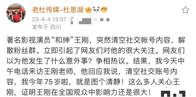 據了解,杜恩湖是一位資深記者,和圈內很多明星的關係都非常不錯,前不久名主持人王剛清空社交賬號,鬧出一陣風波時,杜恩湖還打電話詢問了王剛本人。