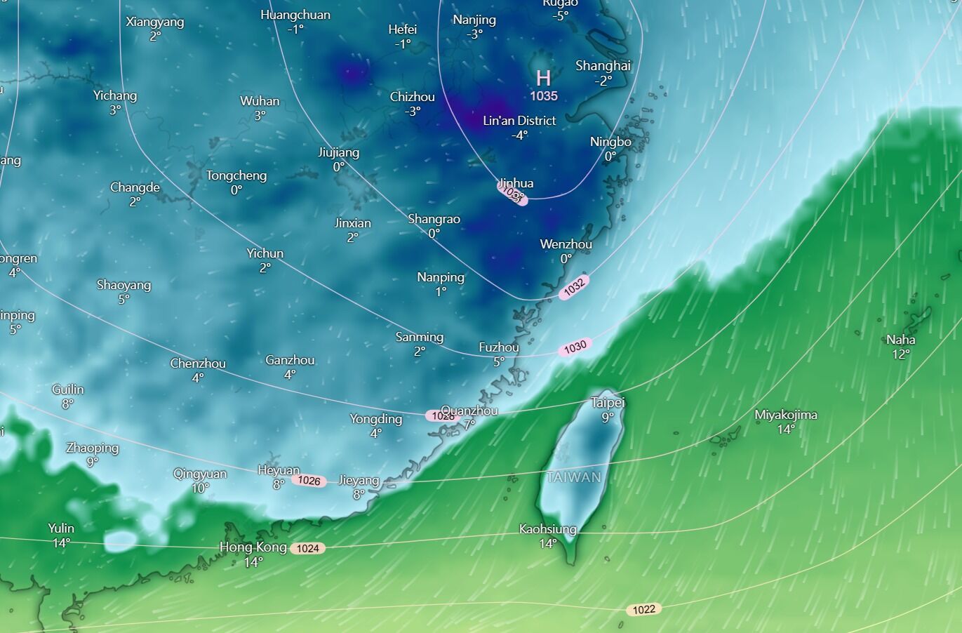 然而好天氣即將告一段落,周五晚間開始鋒面接近並通過,伴隨強烈冷空氣南下,預計將達到寒流等級。氣象單位預測,中部以北及宜花地區溫度將明顯下滑,各地低溫預估降至9至12度,沿海或空曠地帶、近山區河谷恐怕會更低,務必提前做好禦寒準備。