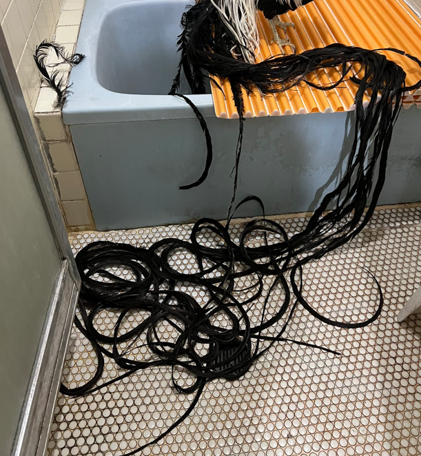 如果在家中看到這樣的景象,相信無論是誰第一時間看到都會嚇到尖叫。日前網路上流傳一張照片,浴室地板出現一大坨黑色長髮,乍看之下就像是女鬼現身,但往上一看本尊卻讓人忍不住驚訝不已。