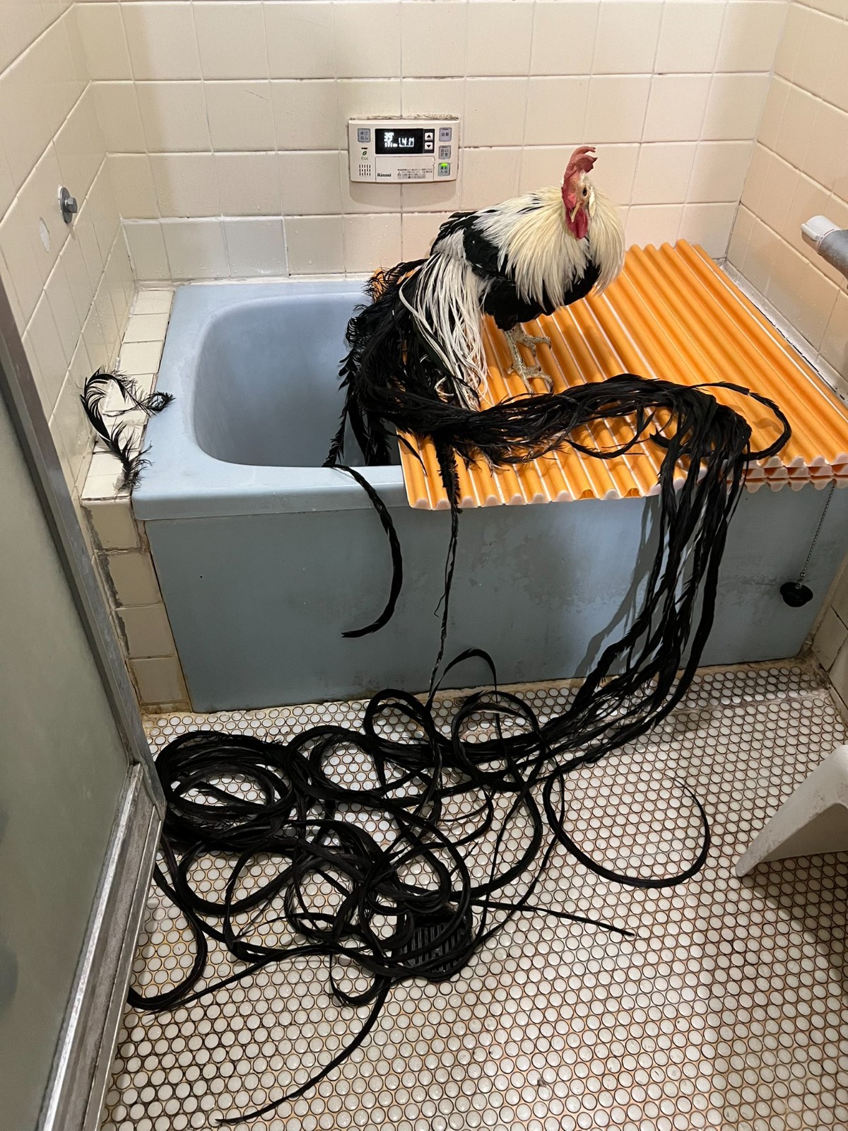 根據《自由時報》報導,原來照片中的主角不是什麼女鬼,而是一隻擁有長長尾羽的寵物雞正在洗澡。當時飼主正在幫寵物雞「玉鬘」清洗,由於尾羽實在太長,洗起來非常耗時耗力,飼主需要在洗完後立即吹乾保持乾燥,接著用山茶油來打理羽毛,前前後後得花上3個小時左右。
