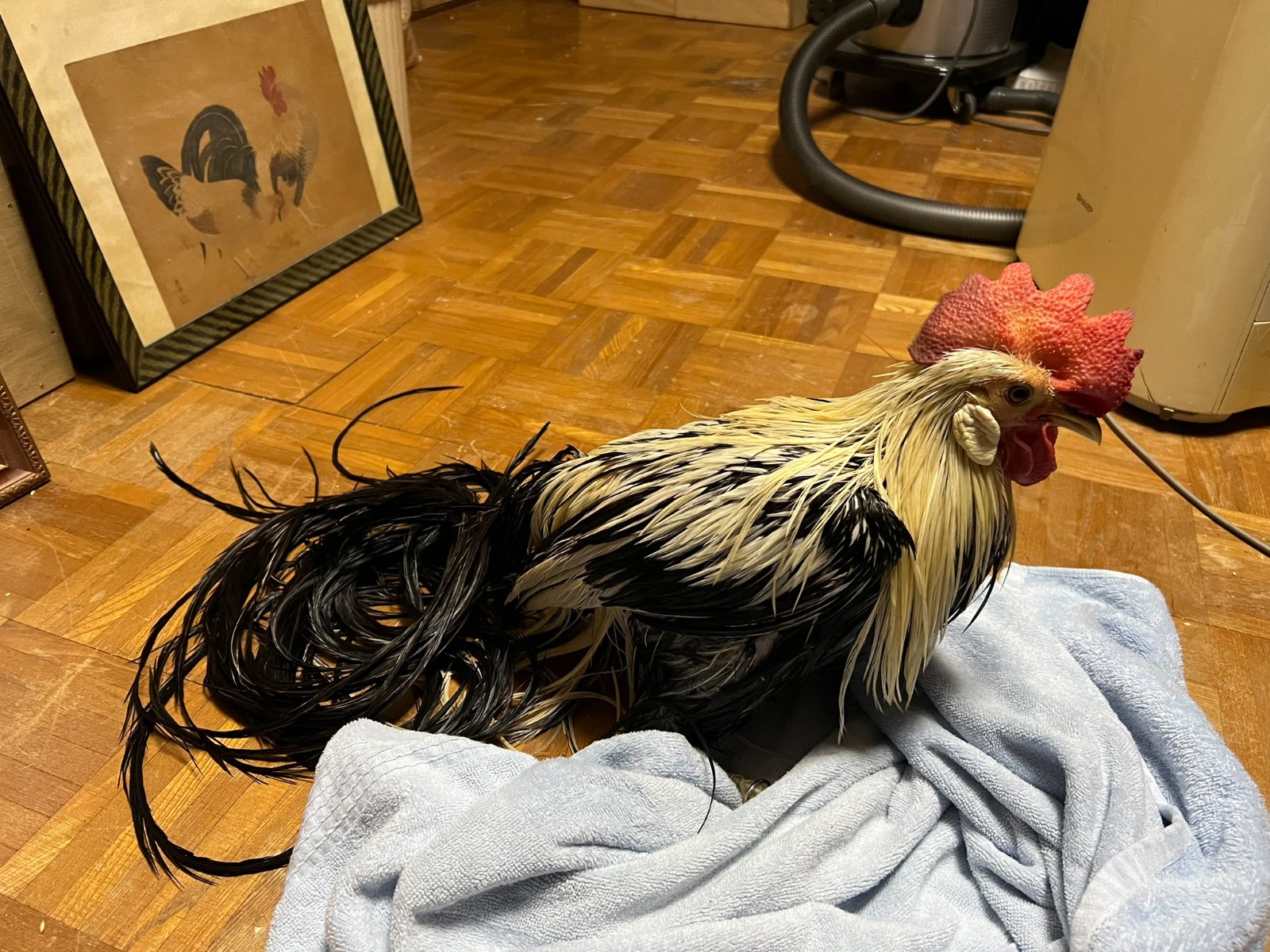 飼主透露,所飼養的寵物雞品種為「土佐長尾雞(Onagadori)」,長尾雞在1952年被指定為日本的天然紀念物,顧名思義牠們最大的特點,就是擁有修長茂密的尾羽,雄性長尾雞的尾羽最長可以達到8公尺以上。