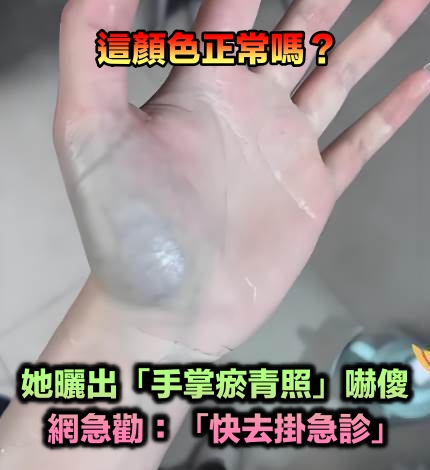 她曬出「手掌瘀青照」納悶問:這顏色正常嗎?網一看「勸快去掛急診」檢查結果讓她腿軟