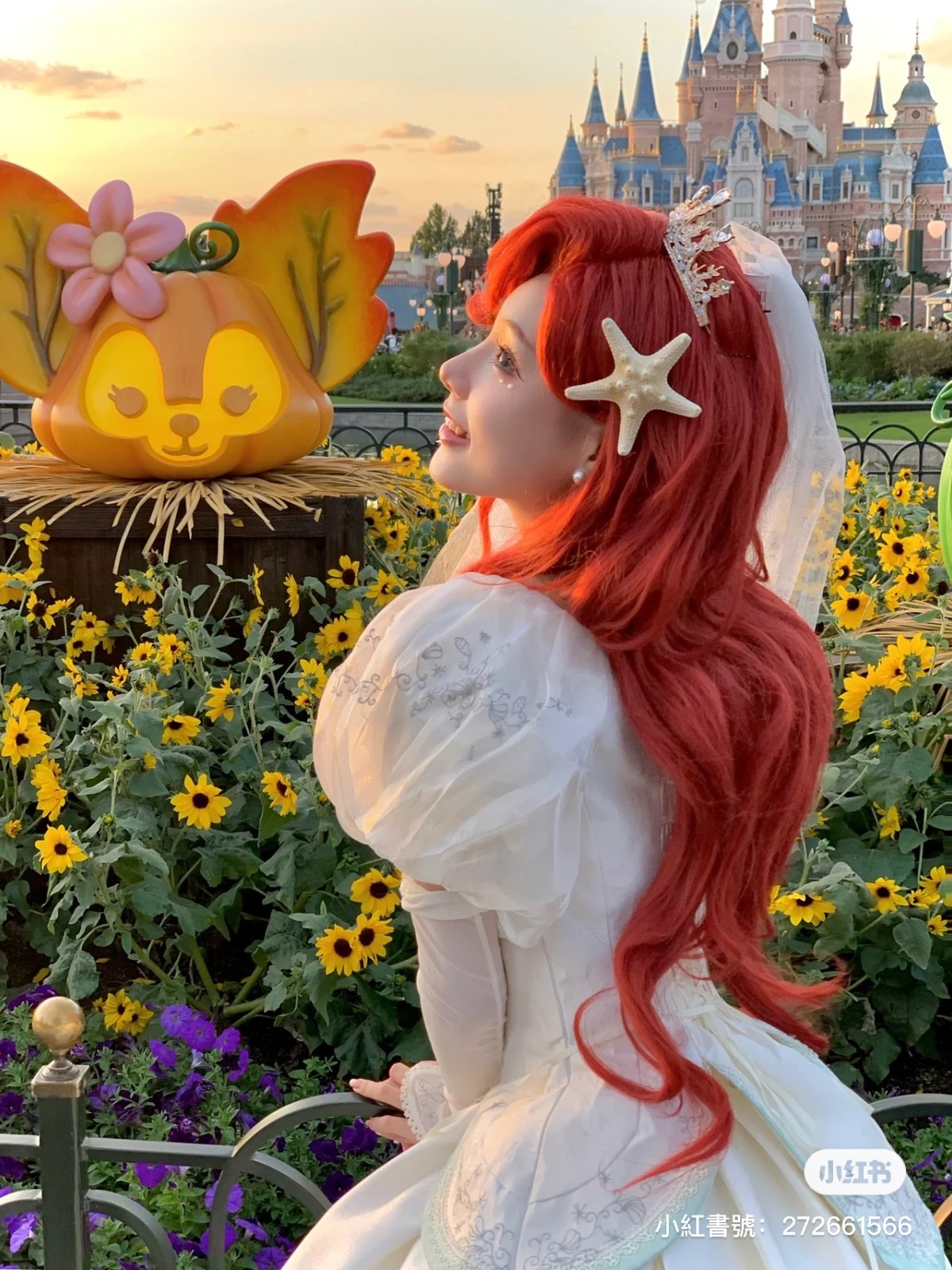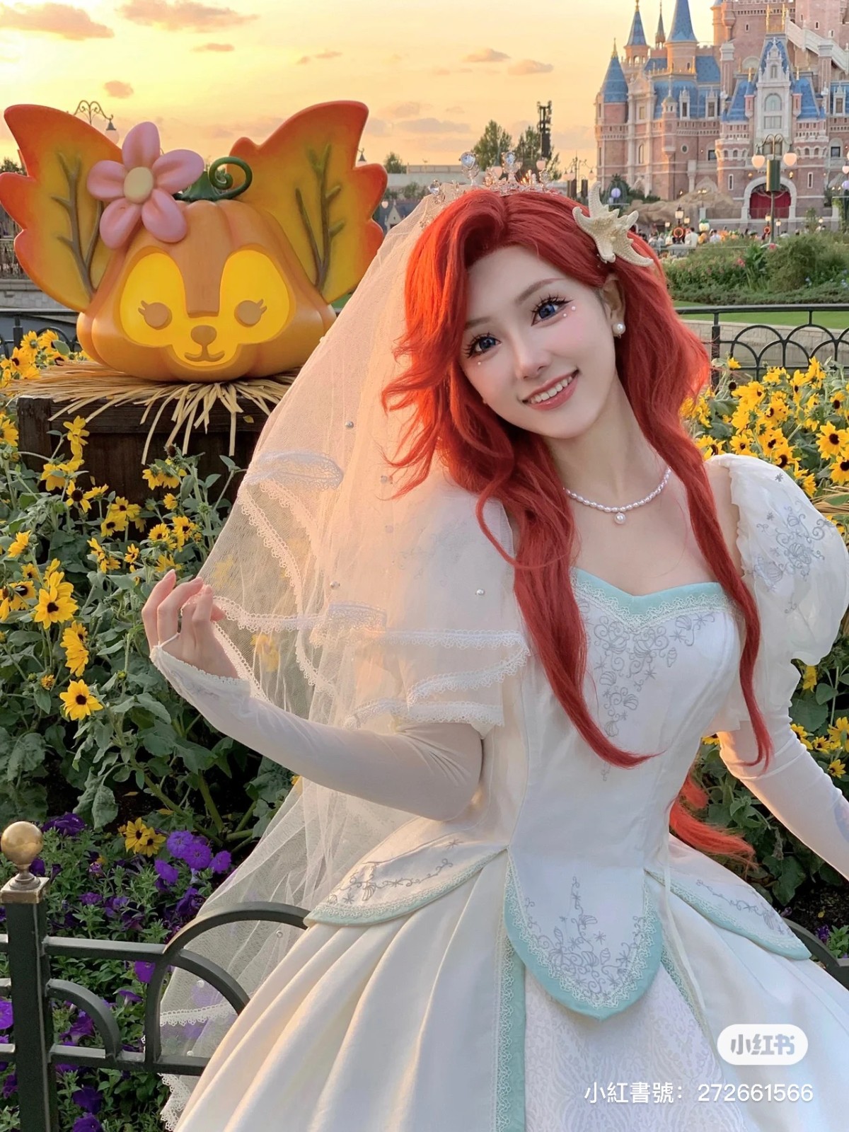 從動畫走出來!迪士尼樂園遇見「戴口罩的貝兒公主」仙氣爆發 變身「紅髮小美人魚」根本天使本尊❤️