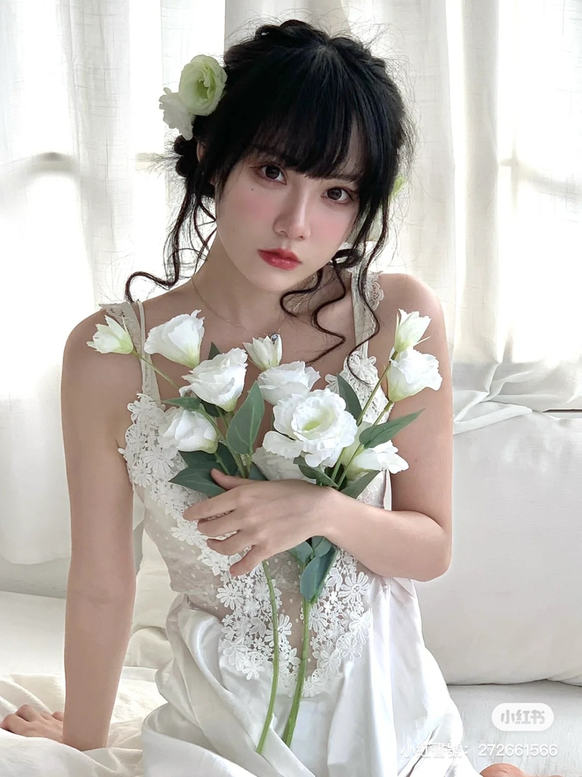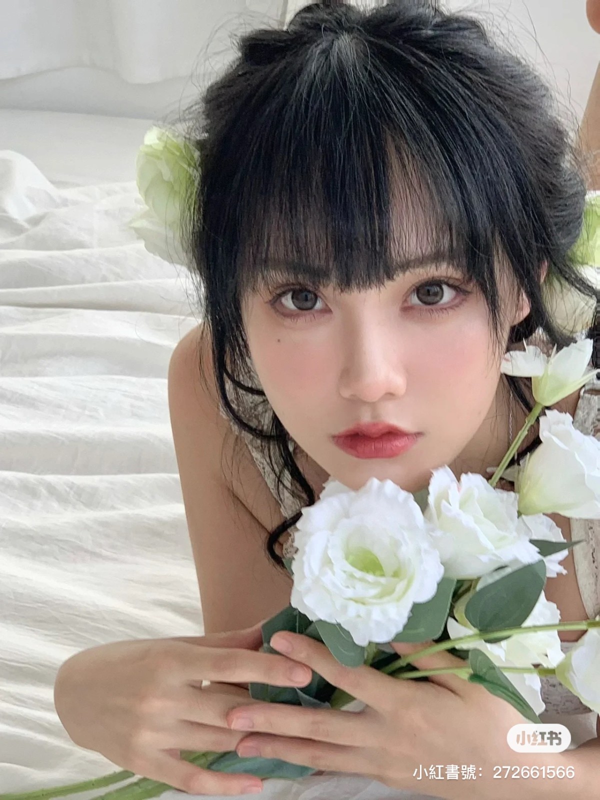 就算是近看都找不出缺點的臉,粉嫩嫩的皮膚加上水汪汪大眼睛,潔白的衣服更能襯出少女清純無辜感~