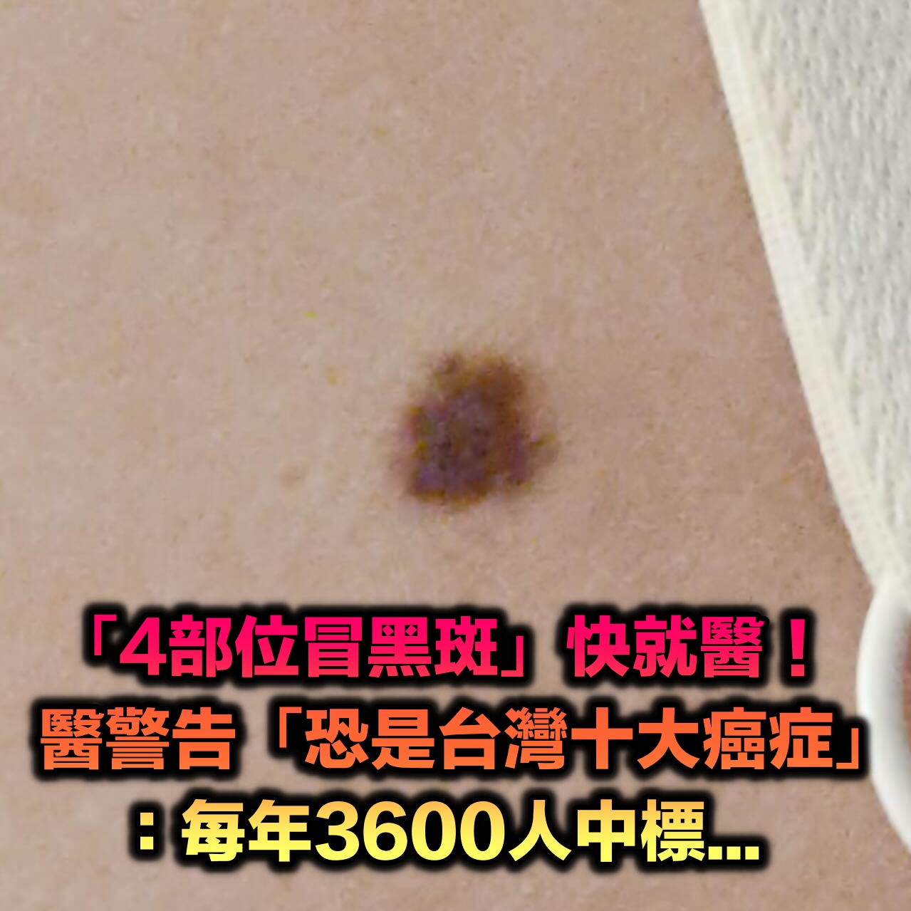 醫警告「4部位冒黑斑」緊急就醫!恐是「台灣十大癌症」:每年3600人中標