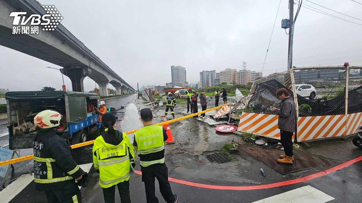 從事故現場畫面可以看到,肇事的大型車輛撞擊力道相當猛烈,不僅將路旁空地的哨所鐵架圍籬撞得稀巴爛,連帶電線杆、路牌以及消防栓都遭到波及損毀。由於消防栓被撞斷,導致大量水柱不停從地面噴湧而出,整個路口一片混亂。