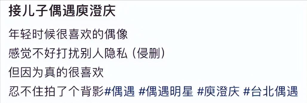 8月4日,有網友在台北某校門口偶遇到了庾澄慶,為了不徹底曝光偶像的隱私,偶遇者只把庾澄慶的側臉圖片分享到網路上。