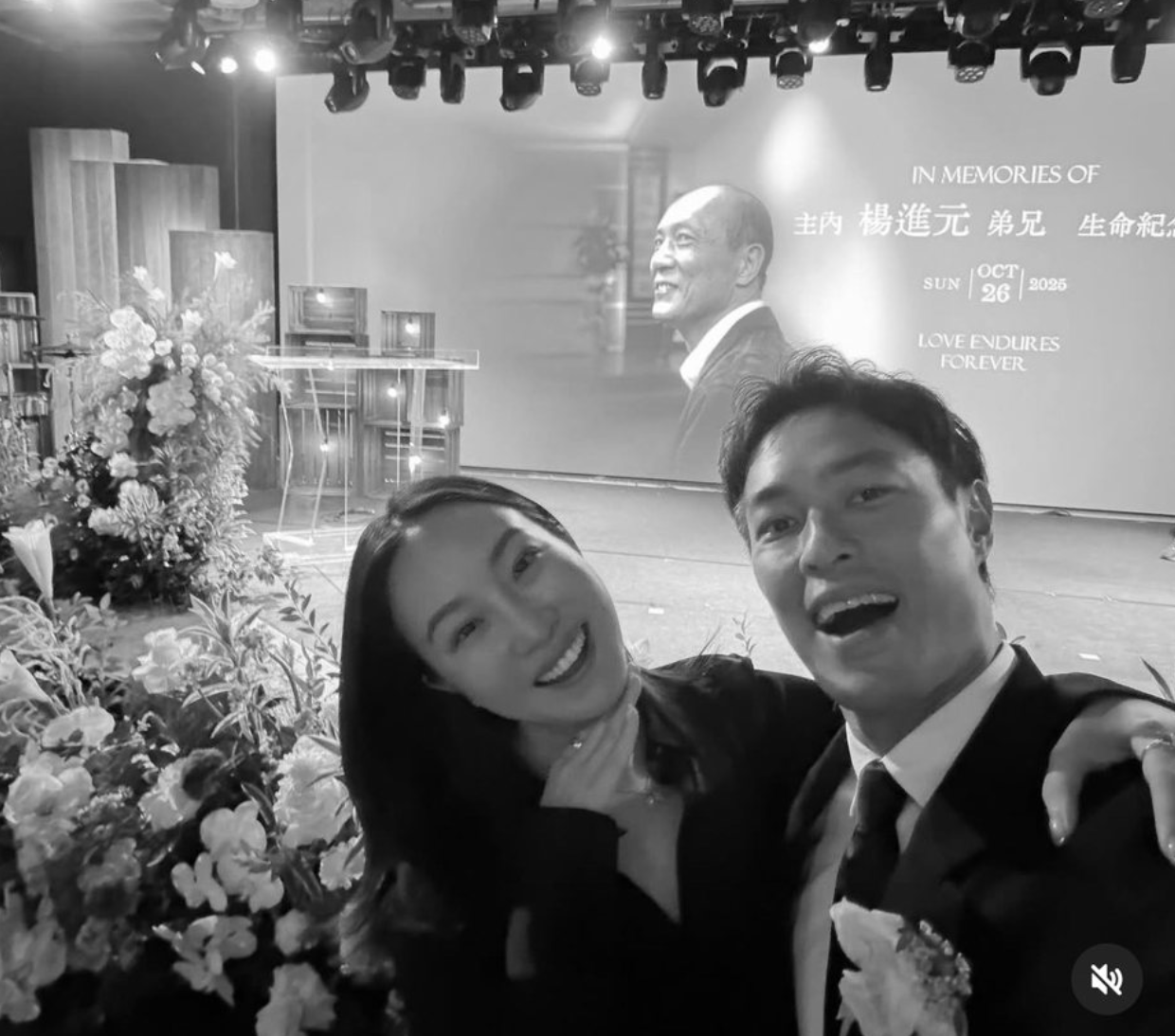 台灣43歲男星楊祐寧,其父親楊進元於今年6月發現腎臟發炎、尿道結石,後續卻急速惡化成惡性腫瘤,轉移至胸腹,更產生腹脹水腫等症狀,最終於本月初病逝,而上個月楊祐寧才迎接新生命,可說是悲喜交加,卻。昨(26)日,楊祐寧一家為父親於101教會舉辦感恩紀念會,有多達20位藝人前來送別,足見楊父生前的好人緣,而楊祐寧則身穿全黑西裝,帶著老婆阿梅(Melinda)一同送父親最後一程,肉眼可見他消瘦不少,但仍保持微笑,「大家辛苦了,謝謝」,令人心疼。