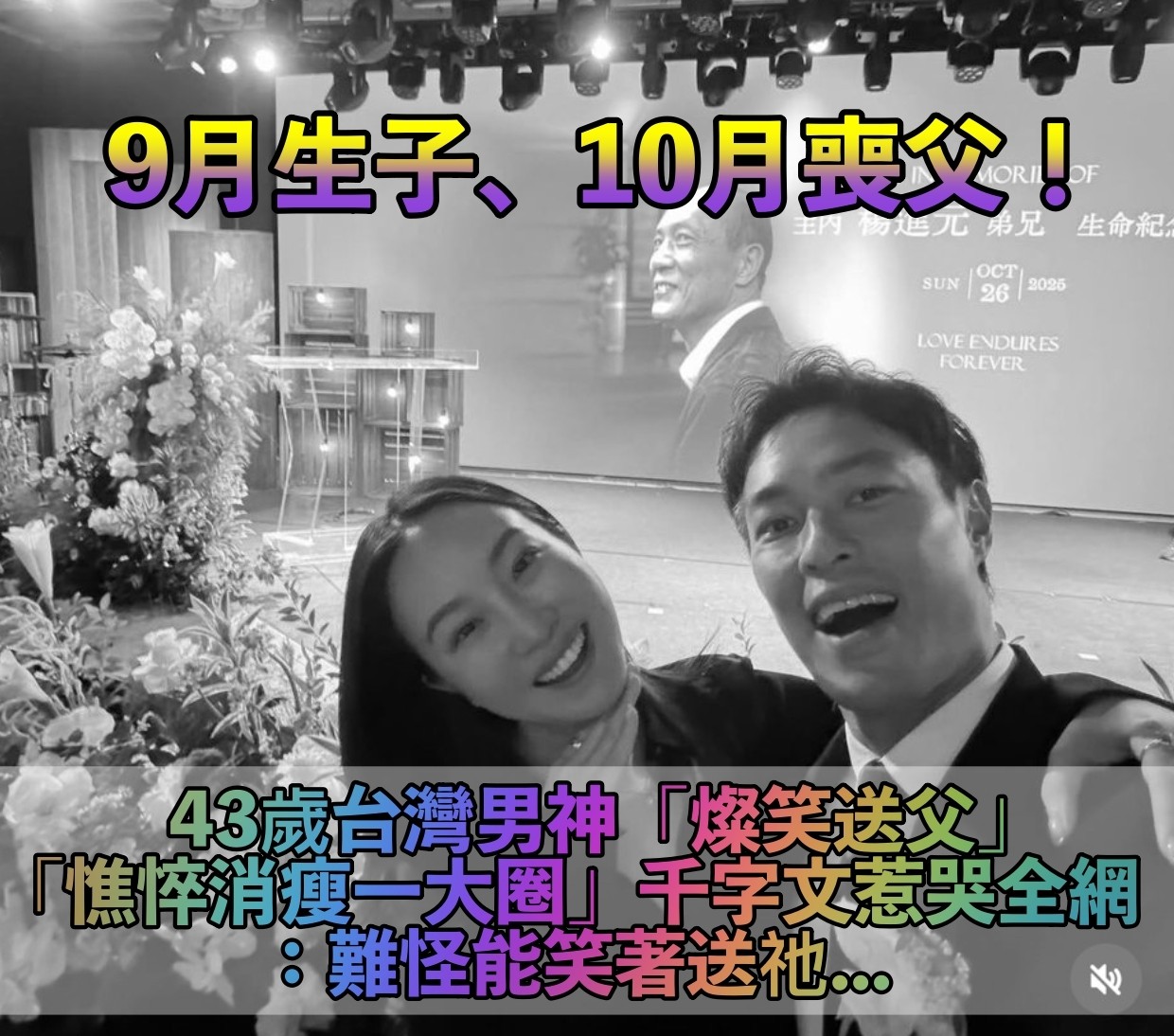 追思癌逝爸爸!43歲台灣男星「喪父14天」憔悴消瘦 緊擁愛妻「燦笑拍最後合照」千字文惹淚:忘不了祂...