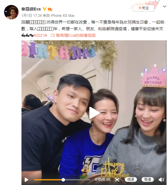 照片中,初代亞姐黎燕珊為愛女慶生,一雙兒女出鏡,畫面其樂融融,很是開心。