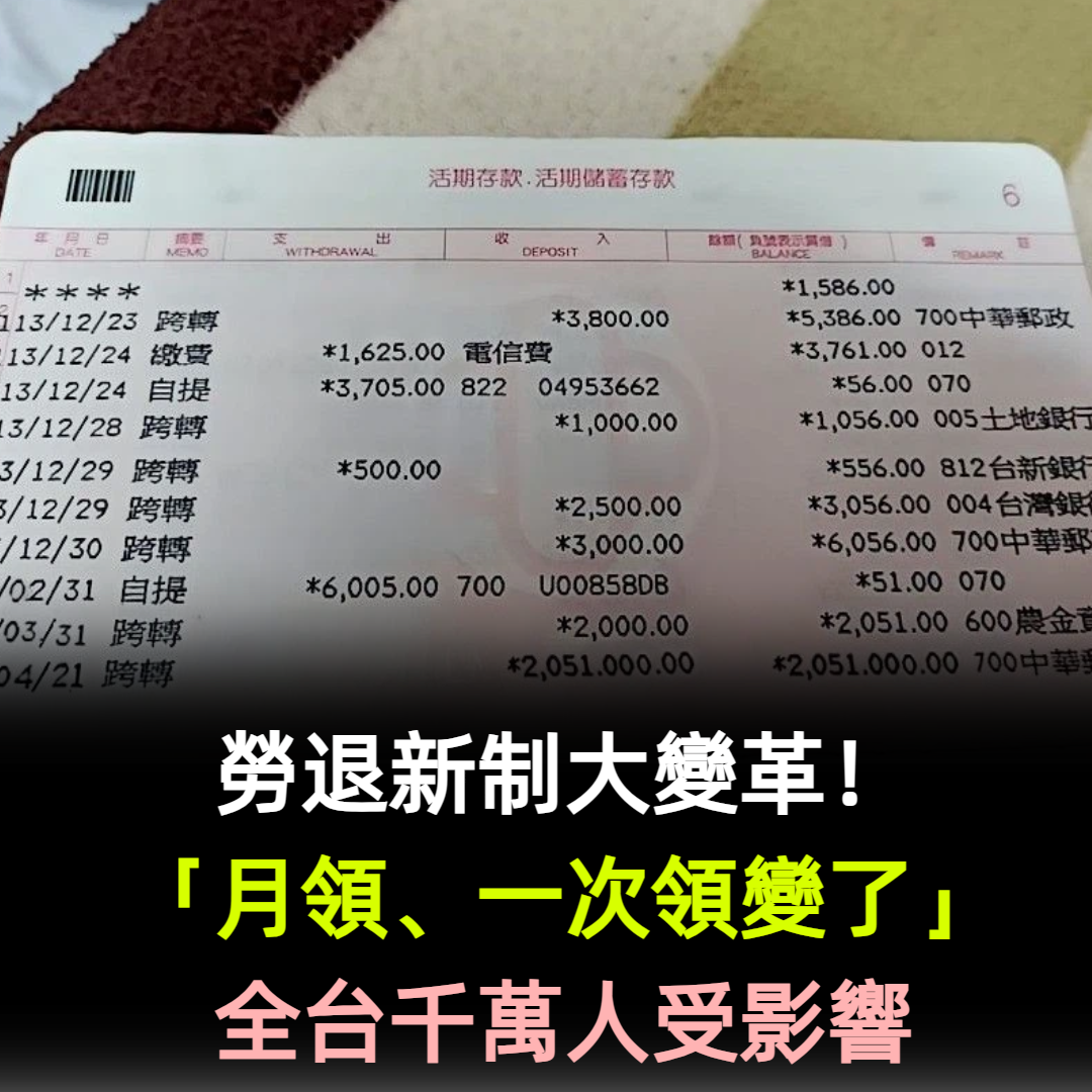 勞退新制大變革!月領、一次領變了「全台千萬人受影響」