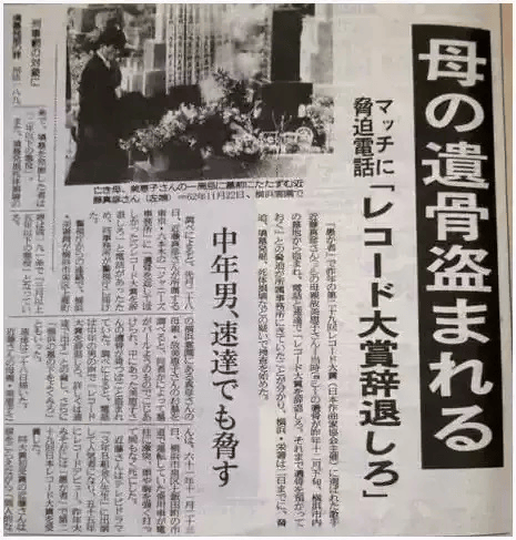 近藤真彥對此絲毫不關心,準時出現在頒獎典禮上。此後其母的骨灰下落不明,這個離奇的盜竊案至今也沒偵破。